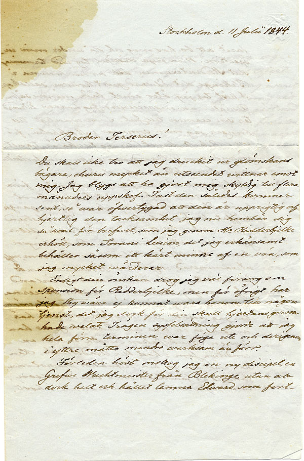 ditt bref af d. 6 dennes. Hjertligaste tack, att du skref fastän