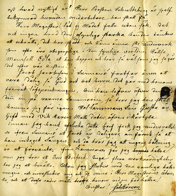 i den synliga werlden. Hällsa Mamsell Edla att hon hoppas och tror