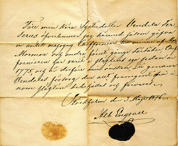 Stockholm den 3 Maji 1876.