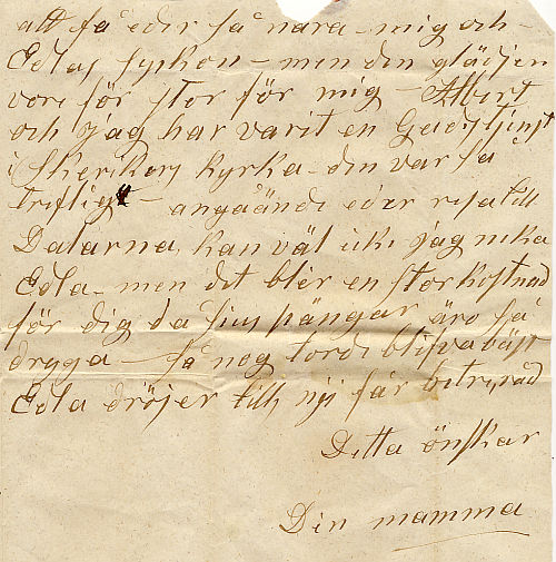 Brevet torde vara skrivet av Elofs blivande svärmor Gustafva Engvall