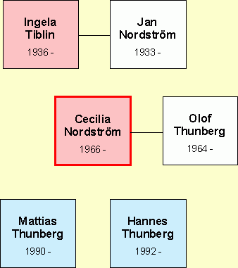 Astrid Cecilia Nordström, born April 29, 1966, married February 4, 1994 to Nils Olof Thunberg (born January 5, 1964). Children: Johan Mattias, born July 22, 1990 Hannes Hugo, born May 17, 1992