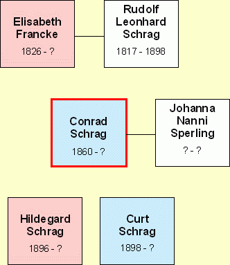 Franz Leonhard Conrad Schrag, geboren am 12. Mai 1860, seit 3. September 1891 vermählt mit Johanna Nanni Sperling aus Leipzig, Dr. iur., Rechtsanwalt in Dresden. Seine Kinder heissen:
