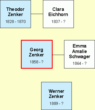 Georg Moritz Zenker, geboren am 5. Juni 1858, Dr. med, Arzt in Leipzig, seit 1888 vermählt mit Emma Amalie Schwager (geb. 3. Juli 1864). Sein Sohn heisst Werner Theodor, geboren am 12. Februar 1889.