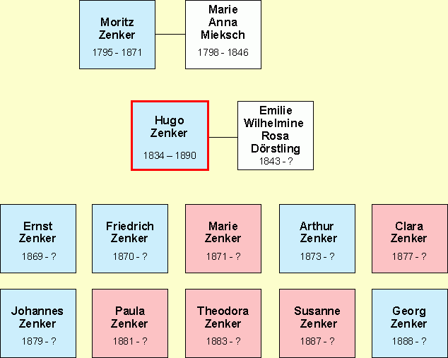 Zenker ist geboren am 13. Oktober 1834, gestorben am 29. Dezember 1890,