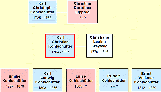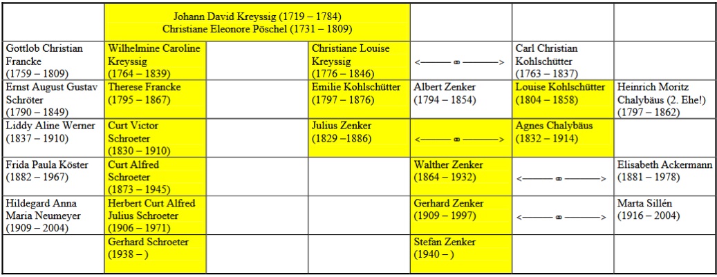 1. Nur die markierten Personen sind Nachkommen des Ehepaars Kreyssig-Pöschel.2.