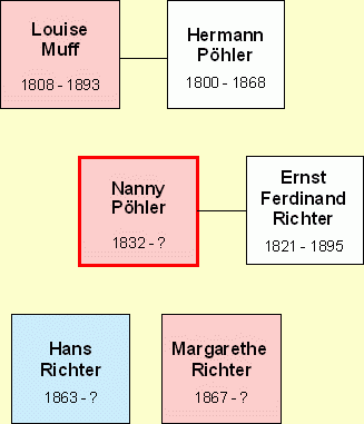 Nanny Louise Pöhler, geboren am 15. November 1832, vermählt mit dem Postdirektor Ernst Ferdinand Richter (geb. 18. März 1821, gest. 8. Februar 1895). Ausser vier frühverstorbenen Töchtern Susanna, Elisabeth, Anna und Susanna sind ihre Kinder: