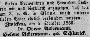 5. Oktober 1913 in Dresden, verheiratet in Pirna am 3. Oktober 1865