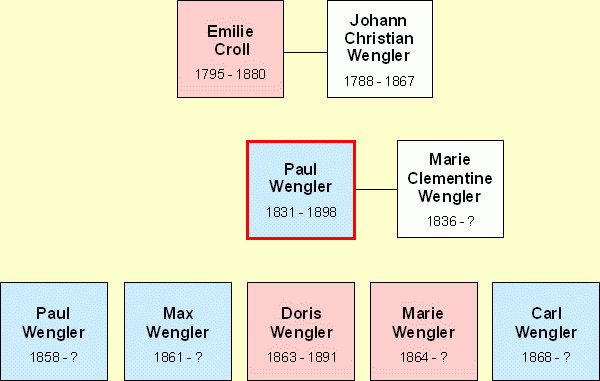 Paul Woldemar Wengler ist am 21. Mai 1831 geboren und am 20. Juli 1898 gestorben, Dr. med., Medizinalrat in Dresden, vermählt mit Marie Clementine Wengler (geb. 11. Juni 1836). Seine Kinder sind: