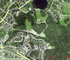 en äng och upp i skogen mot Edsberg. Passera tennishallen. Bilvägen