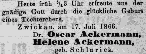 Oscar Ackermann, geb. am 19.Oktober 1836 in Leipzig, gest. am