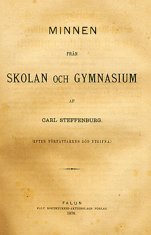 Dessa minnen omfatta tiden från 1814 till 1822 eller den tid, hvarunder författaren såsom lärjunge tillhörde först Falu trivialskola och sedan gymnasium i Westerås. De äro upptecknade af den för sitt älskliga och spirituella väsen, sin godmodiga verldsåskådning och sin humoristiska berättareförmåga ganska vidt ryktbare prosten i Sundborn, framlidne Carl Steffenburg. Redan år 1861 började författaren uppteckna sina skolminnen, hvilka han sedan oupphörligt kompletterade; och minnena rörande gymnasiilifvet i Westerås påbörjades 1870 eller några få år före hans bortgång. Sysselsättningen härmed utgjorde en lika angenäm som behöflig förströelse för den af naturen mycket verksamme, men då mera af hvarjehanda krämpor hemsökte, åldrige författaren; och sjelf tänkte han näppeligen någonsin på dessa minnens offentliga utgifvande, emedan han i sin anspråkslöshet icke tillmätte dem något högre värde, än att tjena såsom bidrag att för stunden roa en och annan krets af glada umgängesvänner och gamla skolkamrater, för hvilka han med sin oefterhärmligt lifliga och målande aktion ofta plägade föredraga dessa anteckningar. Men oaktadt författarens anspåkslösa uppskattning af dessa anteckningars värde för en vidsträcktare krets, ega de dock obestridligen ett sådant och det i icke ringa grad. Ehuru till större delen innefattande putslustiga anekdoter och historietter från det skol- och gymnasiilif, som för vår samtid är »en saga blott», träffas dock här och der under den skämtsamma ytan ett både djupt och lärorikt allvar. För den framlidne författarens ännu lefvande vänner och skolkamrater skall det säkerligen blifva ett kärt nöje att ännu en gång få återupplifva dessa minnen, hvilka förut skänkt dem så mången glad stund; och den, som här läser dem för första gången, skall helt visst icke ångra, att han gjort deras bekantskap. Författarens godmodiga humor samt hans lifliga och målande stil äro dess utom särdeles egnade att göra hans framställning underhållande för läsare af alla åldrar och bildningsgrader. Särskildt torde dessa minnen, såsom bärande ett sant och opartiskt vittnesbörd om det barbari, hvarur vårt uppfostrings- och undervisningsväsen under sista halfseklet lyckligtvis förmått höja sig, för hvarje forskare i vår forntida odlings häfder blifva af det största värde. För att icke i något hänseende rubba det egendomliga i författarens stil, har redigerandet af dessa minnen skett med den lättaste hand och hufvudsakligen bestått i en något förändrad anordning af innehållet äfvensom i uteslutningar af sådant, som tydligen varit afsedt endast för en trängre krets af författarens vänner.